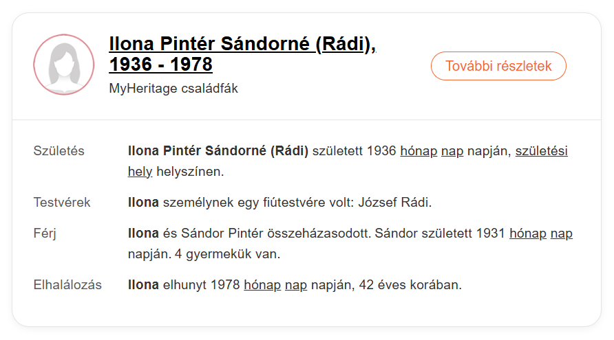 [Csaladtortenet 2] MyHeritage kérés, Pintér Sándorné Rádi Ilona
