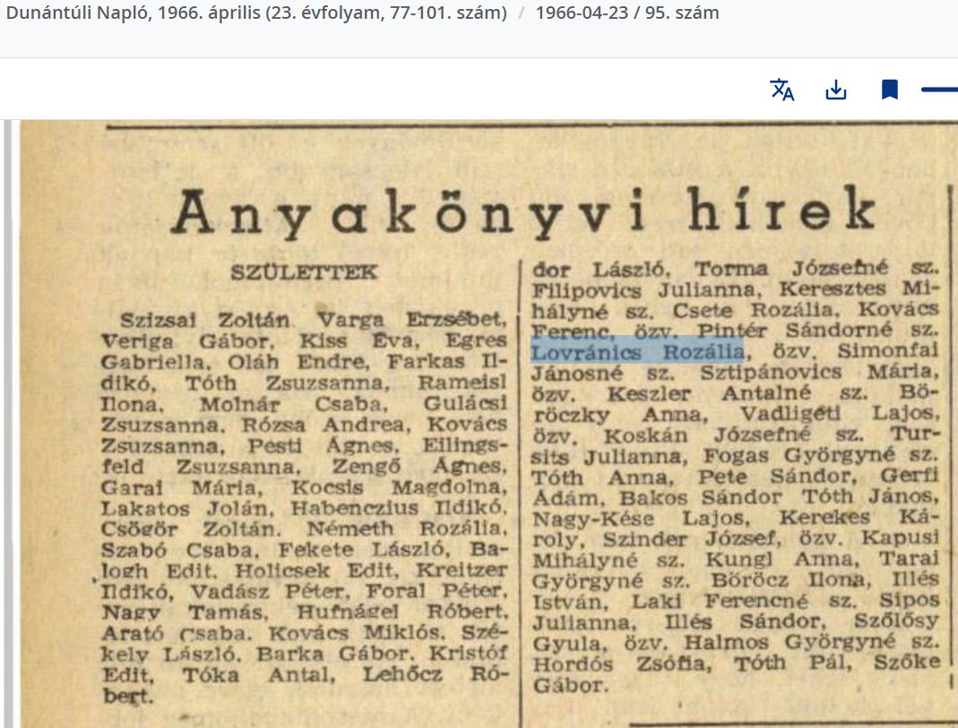 Viszont találtam még özv Pintér Sándorné,Lovranics Rozáliát a Dunántúli