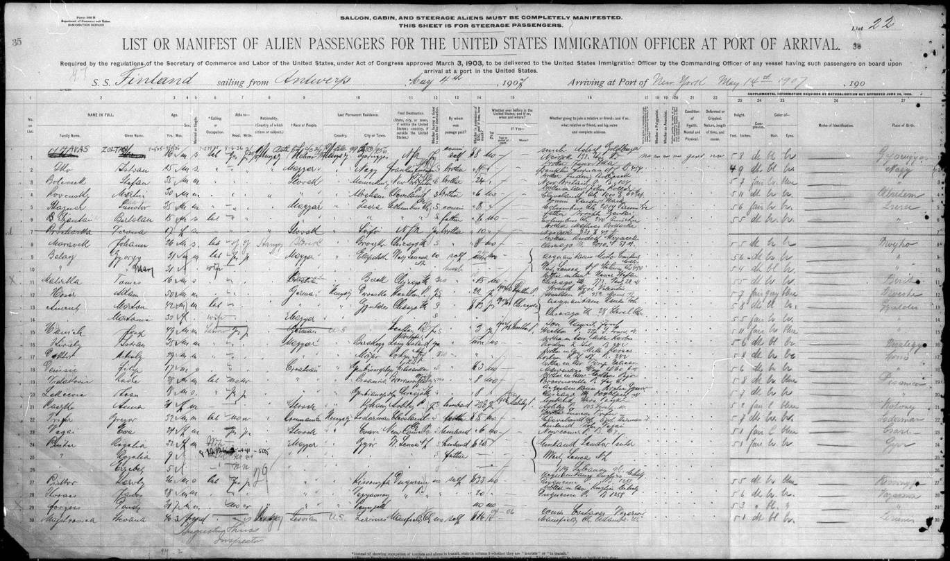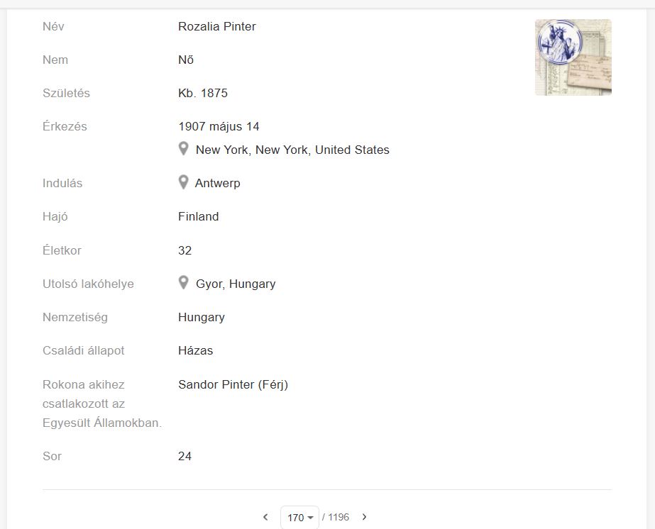 Én ezt találtam most. 1907-ben Antwerpenből induló utaslistán szerepel a